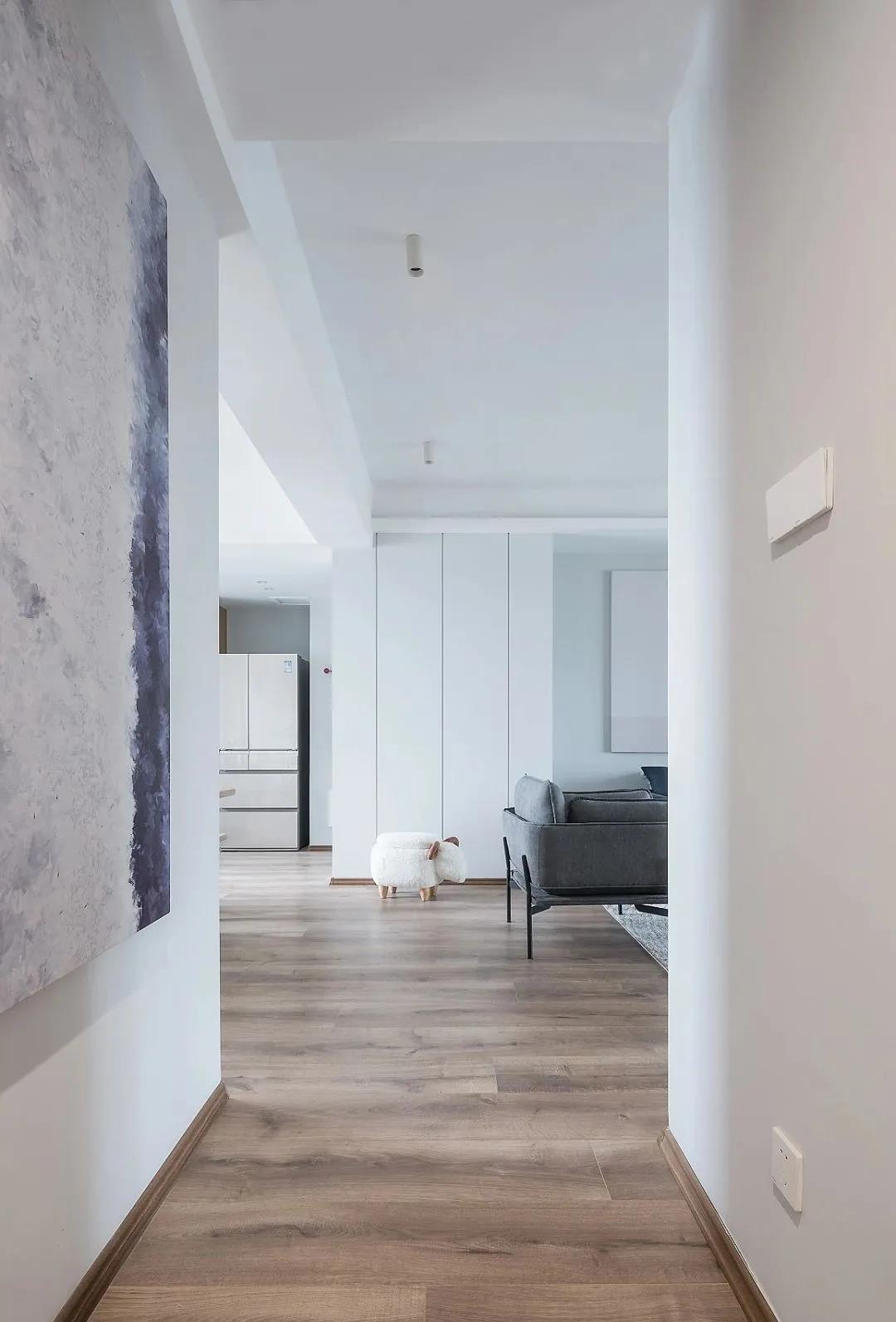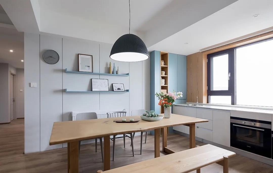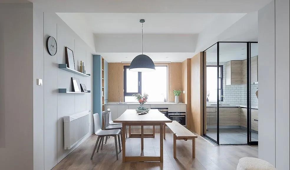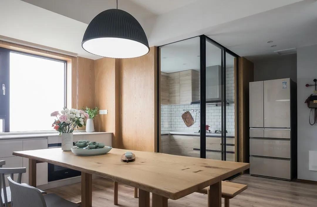 一组135平现代北欧风格新房装修案例。电视墙依旧是非常使用的半收纳设计,餐厨空间玻璃门增加了通透感,更明亮舒适。