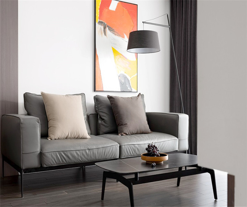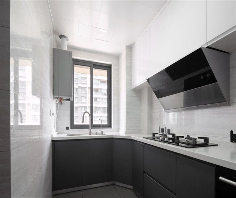 本案客厅米黄色的沙发躺椅门外是超大的阳台空间。躺下捧一本书度过一个舒适的午后,就是生活的小确幸。冷灰色的皮质沙发搭配黑色岩板茶几,点缀一副红色挂画,尽显冷艳!厨房也是全玻璃金属隔断移门,通透感更好,也便于家人之间的沟通。厨房也是全玻璃金属隔断移门,通透感更好,也便于家人之间的沟通