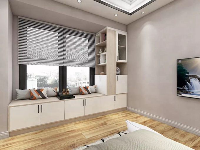 3、在飘窗侧面加入暗格,用于摆放书籍,收纳卧室的小物件,或者是纯用来做装饰也是不错的选择。
